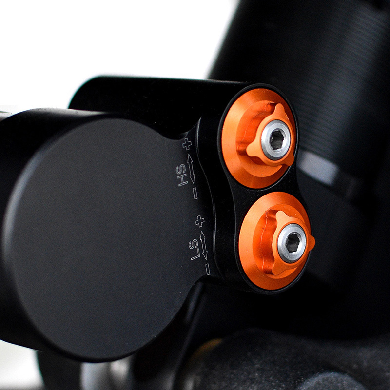 Riders can fine-tune their high + low speed compression and rebound settings on the rear and compression and rebound on the front to suit their individual preferences and riding style, whether navigating rough off-road terrain or carving through twisty roads.