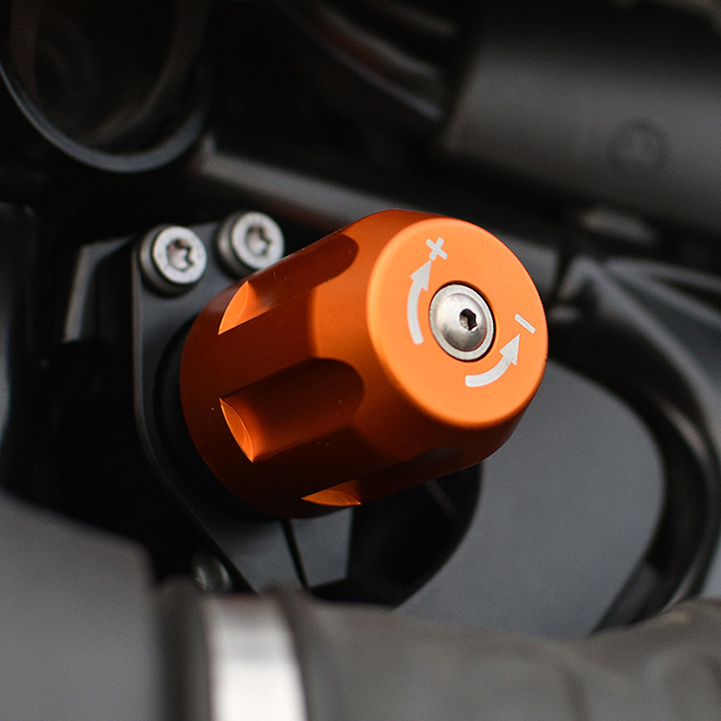 Both cartridge legs allow preload adjustments of up to 12 mm. This easy adjustment capability facilitates load compensation and optimal balance, whether carrying luggage or a passenger.