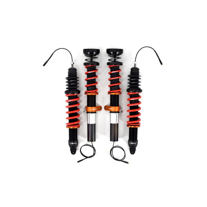 This electronic suspension kit is valved specifically for Road and Track use, with a focus on sufficient comfort for optimal Road use while maintaining sport performance. Each kit is engineered for optimal performance and durability. The dampers are fitted with springs and have an infinite ride height adjustment either through the platforms on the shock bodies or through the separate adjusters.